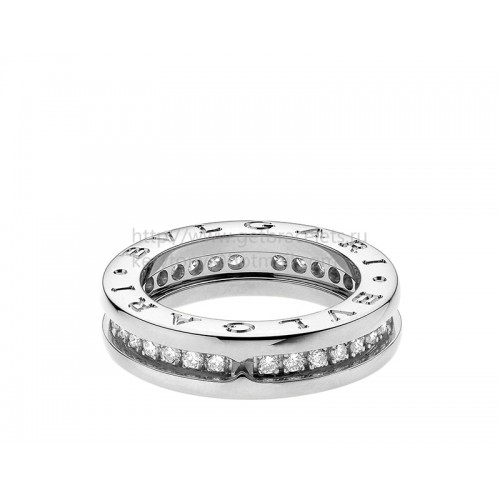 Inel Bvlgari B.zero1 din aur alb cu 1 bandă și diamante pavate