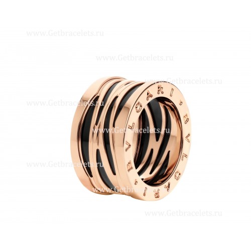 Inel Bvlgari B.zero1 Legend cu 4 benzi din aur roz de 18kt și ceramică neagră