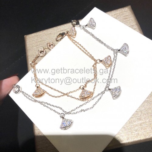 Brățară Bvlgari Divas Dream cu lanț dublu, 4 motive, cu diamante întregi, aur roz și aur alb