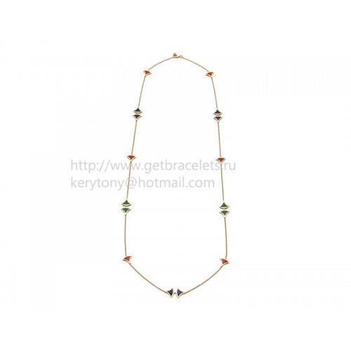 Colier Bvlgari Divas Dream Sautoir din aur roz cu malachit carneol și lapis lazuli