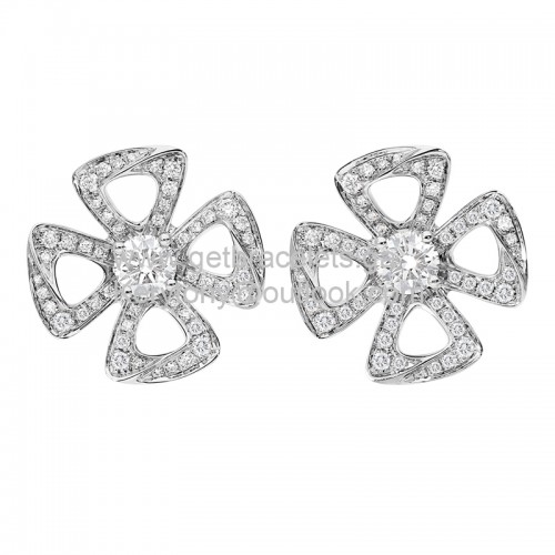 Cercei Bvlgari Fiorever cu două diamante și diamante pavate, aur roz și aur alb AAA