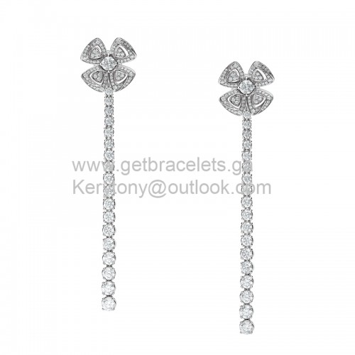 Cercei Bvlgari Fiorever cu patru petale și diamante pavate, aur alb, cea mai înaltă calitate