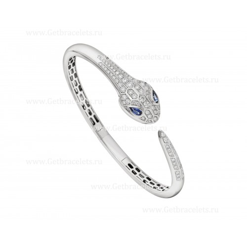 Brățară brățară Bvlgari Serpenti din aur alb de 18K, cu ochi de safire albastre și diamante pavate