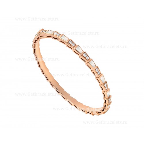 Brățară subțire Bvlgari Serpenti Viper din aur roz de 18K, încrustată cu elemente din sidef și diamante pavate