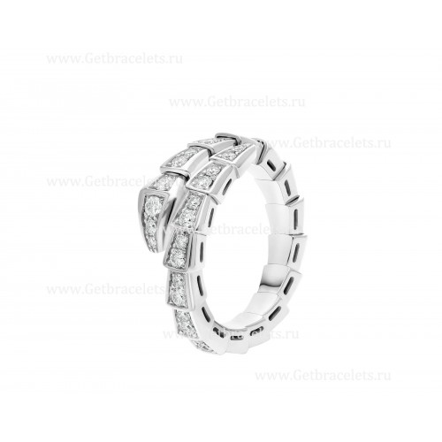 Inel Bvlgari Serpenti Viper din aur alb de 18K cu diamante pavate