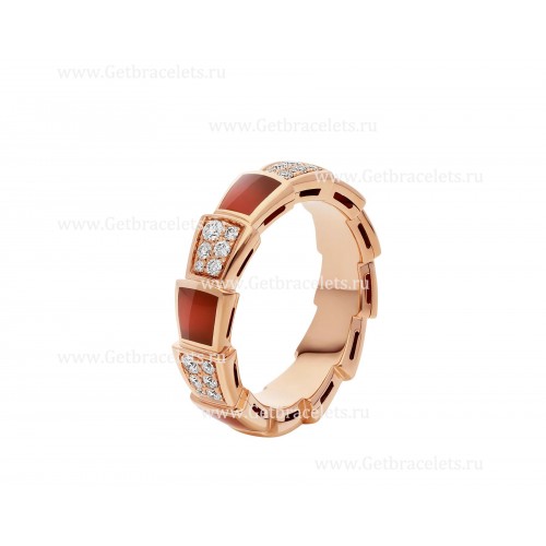 Inel Bvlgari Serpenti Viper Mediu din aur roz de 18k cu elemente de carneol și diamante pavate