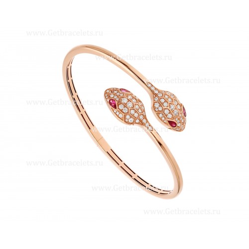 Brățară Bvlgari Serpenti din aur roz de 18K, cu ochi de rubelită și diamante pavate