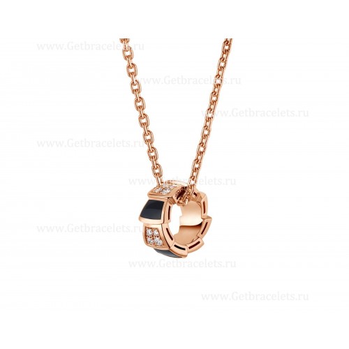 Colier Bvlgari Serpenti Viper din aur roz de 18K cu elemente din onix și diamante pavate pe pandantiv