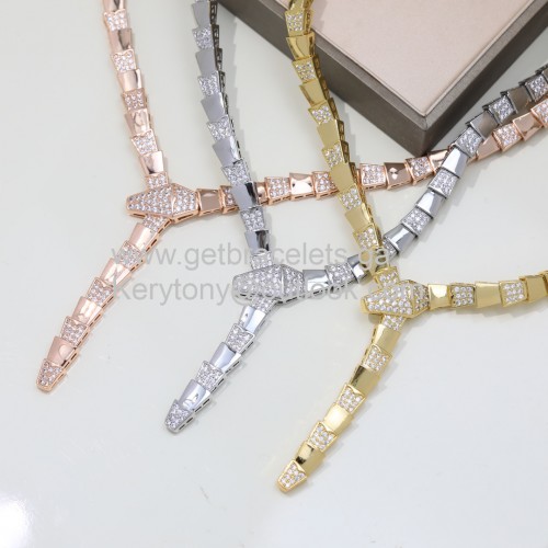 Colier Bvlgari Serpenti cu diamante pavate integral din aur roz-aur galben-aur alb