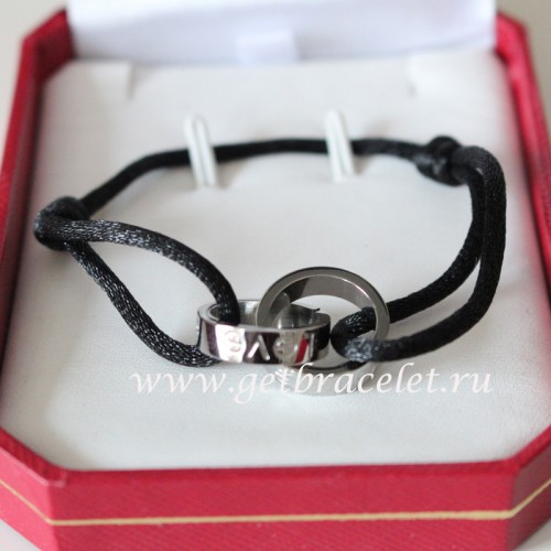 • Brățară Cartier Love cu inel dublu, aur alb și frânghie neagră