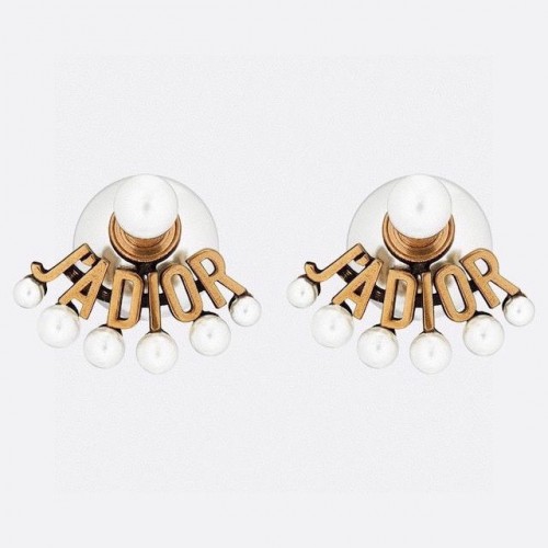 Cercei șurub Dior JAdior cu finisaj auriu antic, rășină albă, JAdior Signature, preț