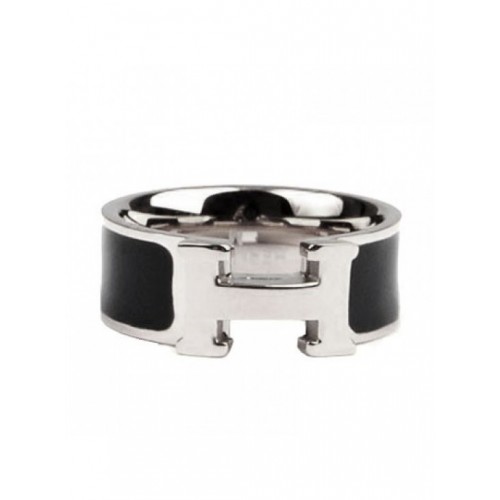 Inel Hermes Clic H emailat în aur alb de 18kt cu negru