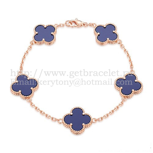 • Brățară Van Cleef Arpels Alhambra cu 5 motive din aur roz și lapis lazuli