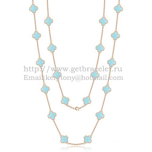 Colier Van Cleef Arpels Alhambra din aur roz cu 20 de motive și sidef turcoaz