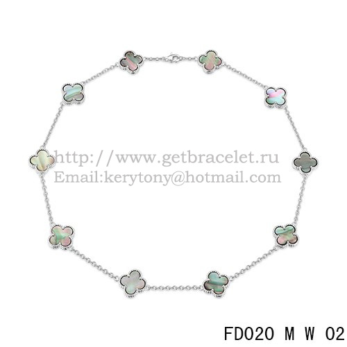 Colier Van Cleef Arpels Alhambra din aur alb cu 10 motive, sidef gri, 45 cm