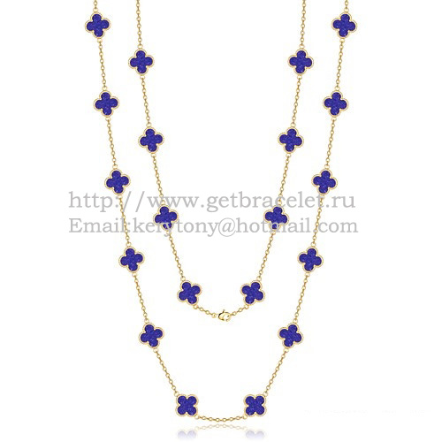 Colier Van Cleef Arpels Alhambra din aur galben cu 20 de motive și lapis lazuli, sidef