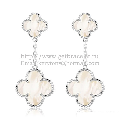 Cercei Van Cleef Arpels Magic Alhambra din aur alb cu sidef alb