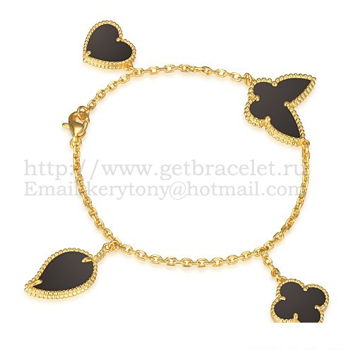 Brățară Van Cleef Arpels Lucky Alhambra cu 4 motive din aur galben cu combinație de pietre 007