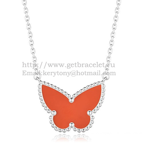 Pandantiv Van Cleef Arpels Lucky Alhambra Butterfly din aur alb cu sidef carneol