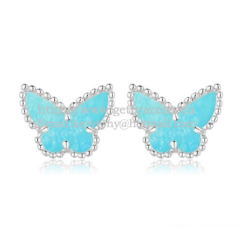Cercei Van Cleef Arpels Sweet Alhambra Butterfly din aur alb cu sidef turcoaz