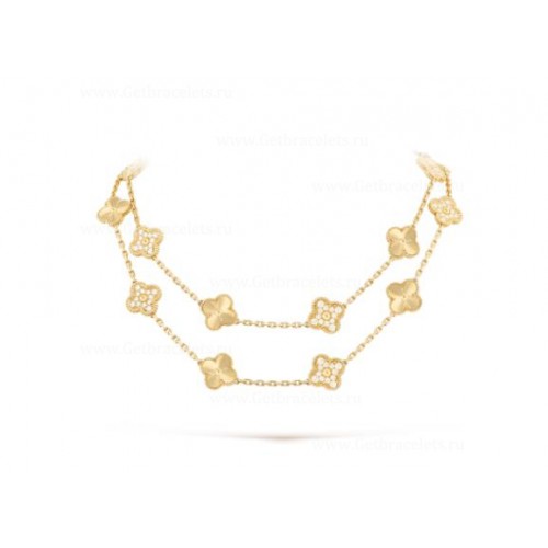 Colier lung Van Cleef Arpels Alhambra cu 20 de motive și diamante din aur galben