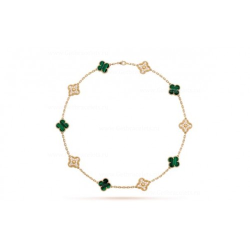 Colier Van Cleef Arpels Alhambra din aur galben cu 10 motive și diamante și malachit