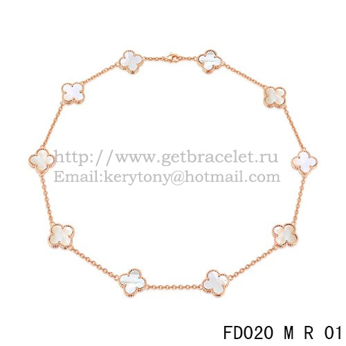 Colier Van Cleef Arpels Alhambra din aur roz cu 10 motive, sidef alb, 45 cm