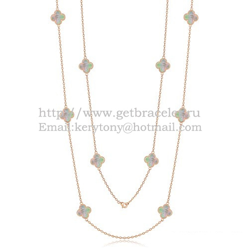 Colier Van Cleef Arpels Alhambra din aur roz cu 10 motive și sidef gri