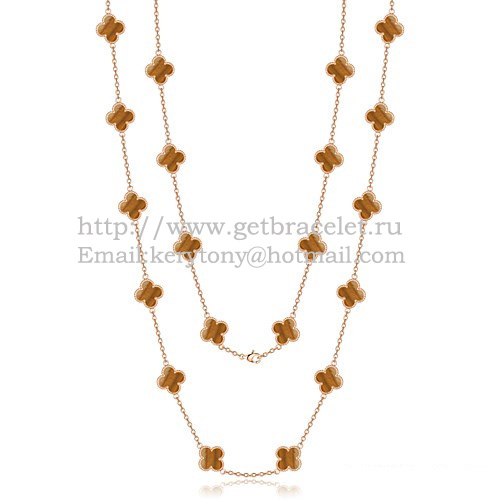 Colier Van Cleef Arpels Alhambra din aur roz cu 20 de motive și ochi de tigru, sidef