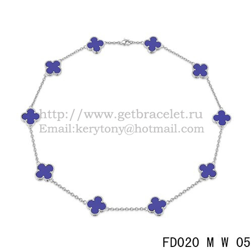 Colier Van Cleef Arpels Alhambra din aur alb cu 10 motive și lapis lazuli, sidef, 45 cm