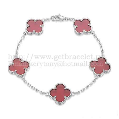 Brățară Van Cleef Arpels Alhambra cu 5 motive din aur alb și sidef carneol