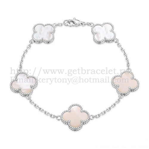 Brățară Van Cleef Arpels Alhambra cu 5 motive din aur alb și sidef alb