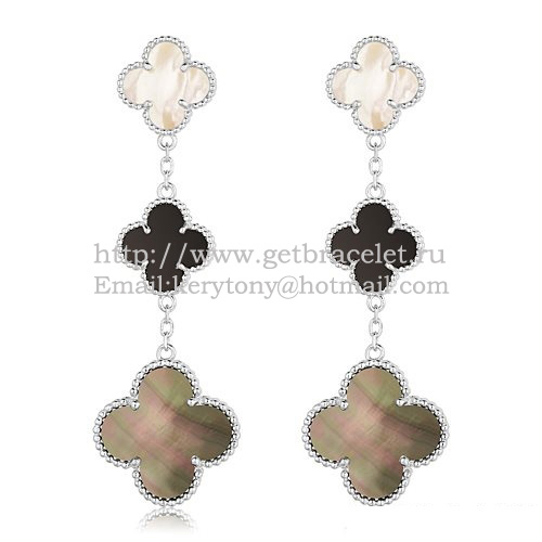 Cercei Van Cleef Arpels Magic Alhambra cu 3 motive, aur alb, cu combinație de pietre