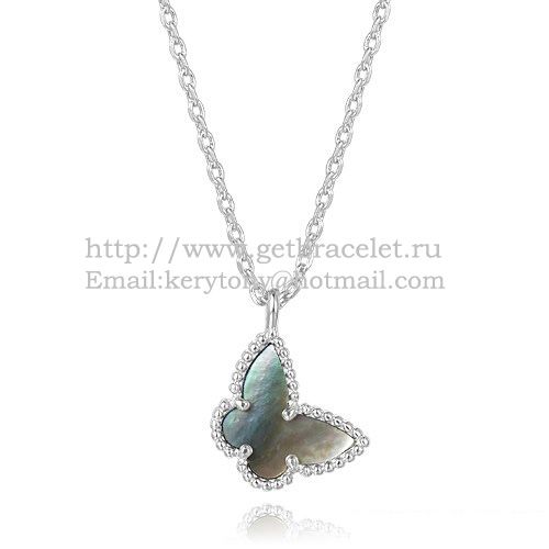 Colier Van Cleef Arpels Lucky Alhambra Butterfly din aur alb cu sidef gri